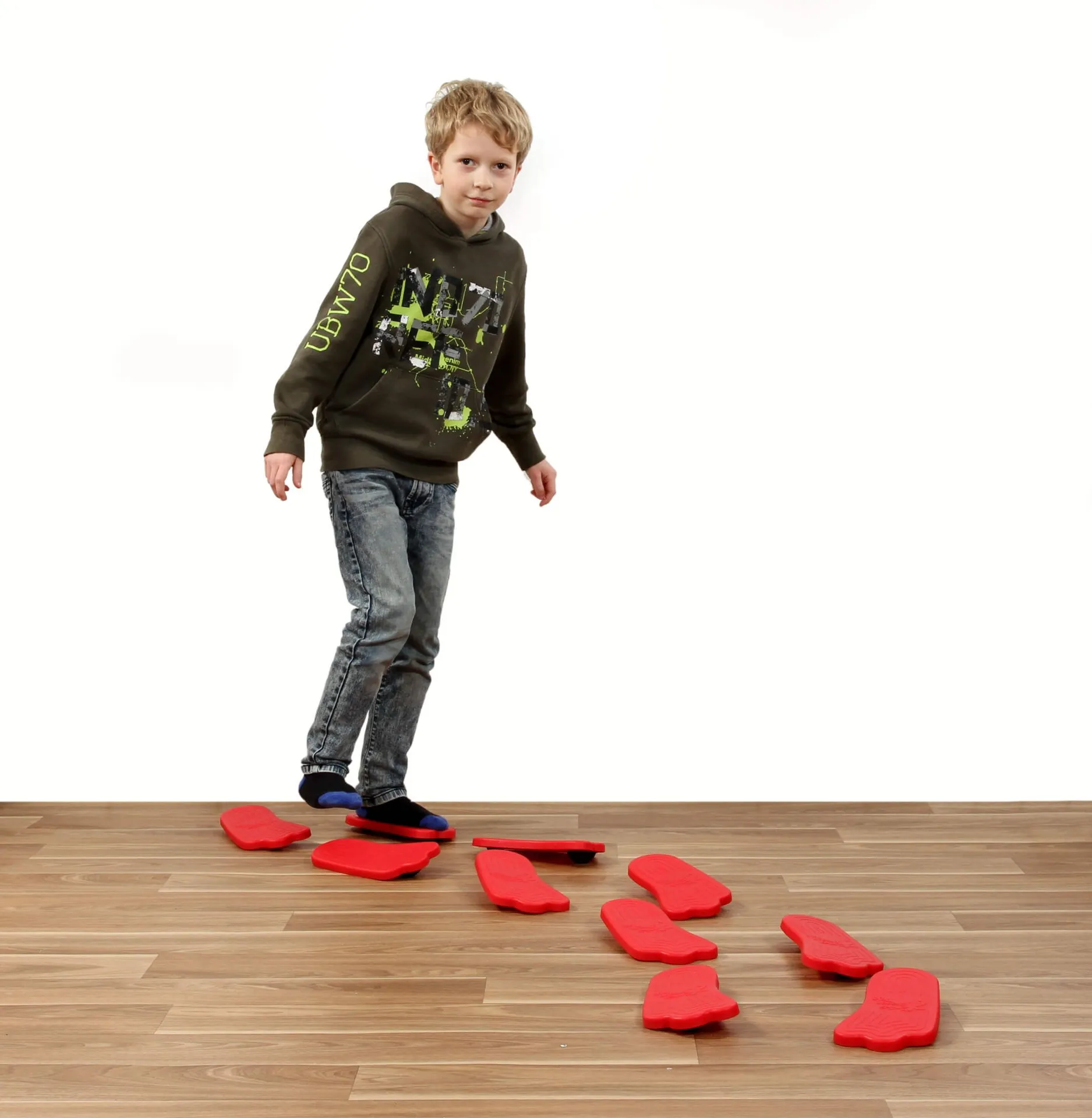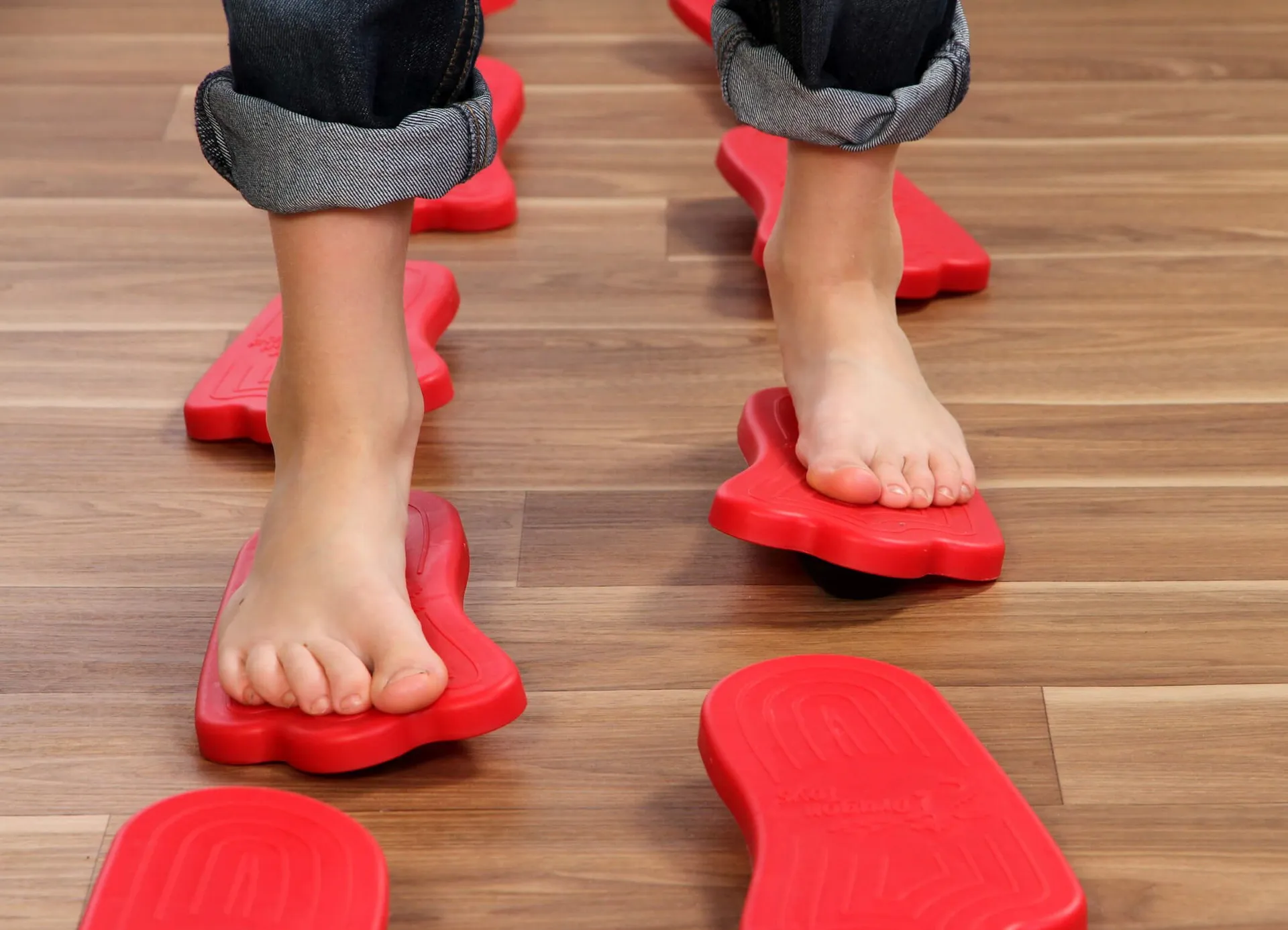 Bei Bicallis handelt es sich um Fußabdrücke in einer einheitlichen Größe aus rotem Kunststoff, die man als Spur auf den Boden auslegen kann. Geeignet ist das Produkt laut Hersteller Dragon Toys für Kinder ab 2 Jahren. Die rechten und linken Abdrücke werden abwechselnd als Pfad gelegt, dem die Kinder folgen. Die Unterseite von Bicallis ist unterschiedlich mit schwarzen Gummikuppen bestückt, die bei jedem Auftreten eine andere körperliche Reaktion auf den neuen Untergrund erfordern. Die Ausgleichsbewegung, die durch Bicallis abverlangt wird, trainiert bei den Kindern die gesamte Motorik und wirkt sich vor allem auf die Balance positiv aus. Durch die unterschiedlichen Fußstapfen oder den Kauf mehrerer Sets können vielzählige Variationen für die Kinder gelegt werden, sodass keine Gewöhnungseffekte auftreten können.