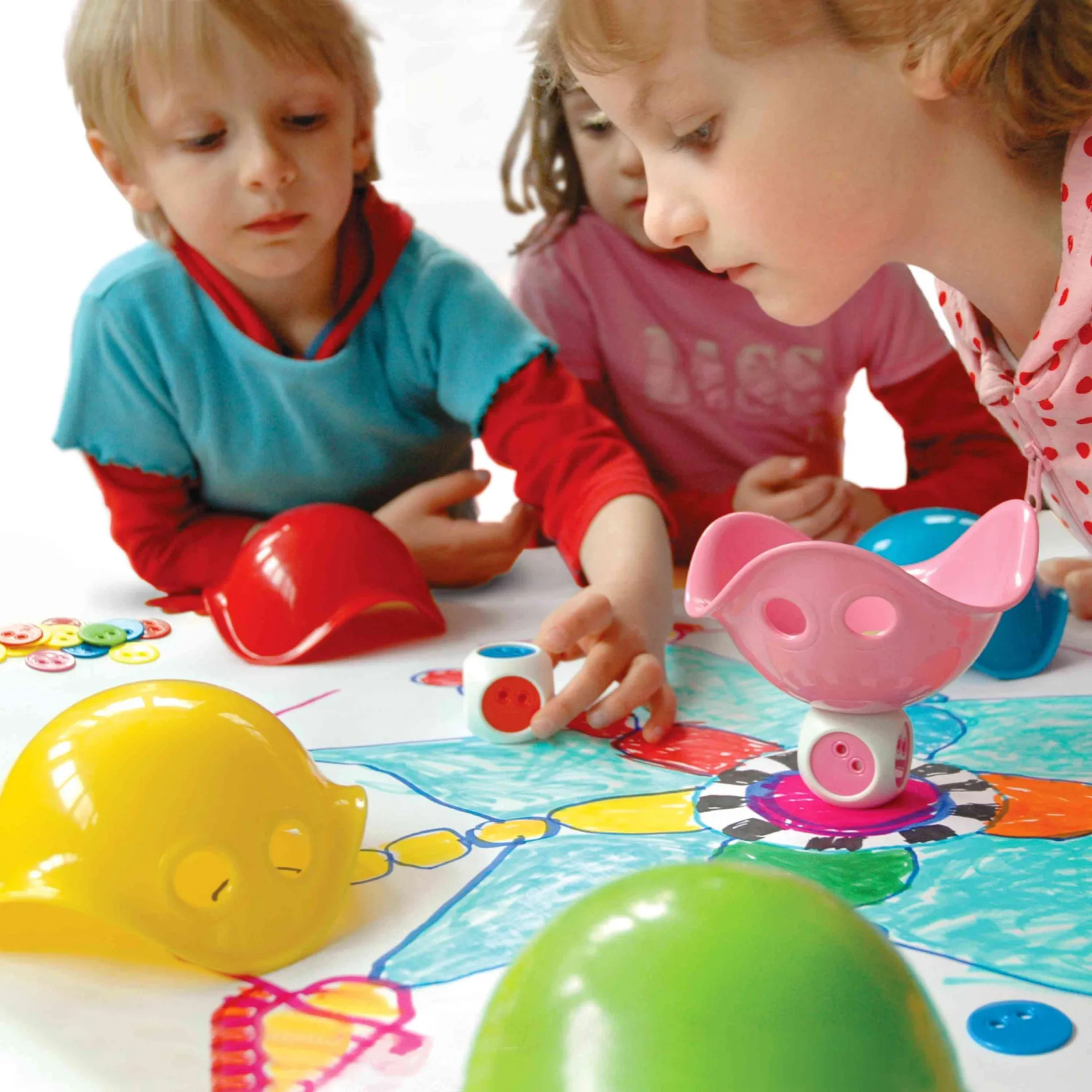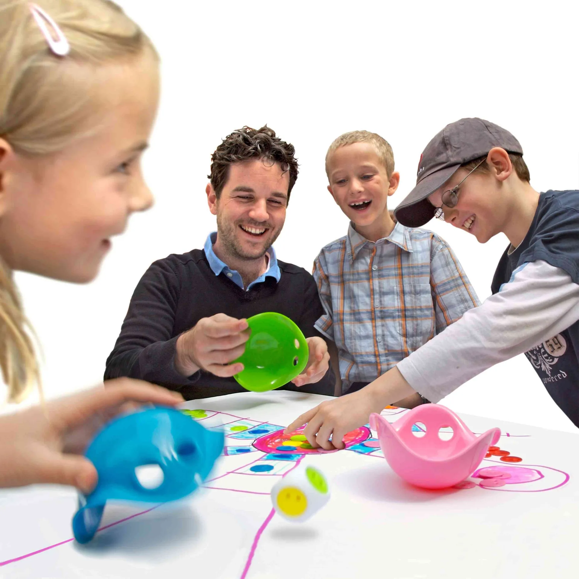 Nimm sechs Mini-Bilibos und füge einen anpassbaren, hüpfenden Würfel mit 36 Farbchips hinzu. Schon hast du einen faszinierenden Baukasten für unzählige Spiele und Aktivitäten, die die ganze Familie begeistern. Farben zuordnen, Tiddlywinks spielen, stapeln und balancieren, schnippen und zielen, werfen und fangen, sortieren, zählen und lernen, würfeln und eigene Spiele erfinden!