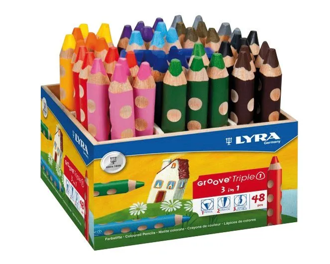 Die DreifachEins – Schulbox bringt den Aquarellstift, Buntstift und die Wachsmalkreide in einem einzigen Stift in den Kindergarten und in die Schule! Die leuchtenden und intensiven Farben sind wasserlöslich und lassen sich kinderleicht miteinander mischen. Mit einem Durchmesser von 15 mm und rutschsicheren Griffmulden für Daumen, Zeige- und Mittelfinger eignet sich der Triple 1 sowohl für Linkshänder, als auch für Rechtshänder. Die Griffmulden ermöglichen den unerfahrenen Kinderhänden, sofort die korrekte Position einzunehmen. Mit den Triple 1 Stiften kann auch auf allen glatten Oberflächen wie Glas und Spiegeln wunderbar gemalt werden. Das Holz des vielseitigenBuntstifts stammt aus nachhaltig bewirtschafteten, PEFC-zertifizierten Wäldern und ist von höchster Qualität.