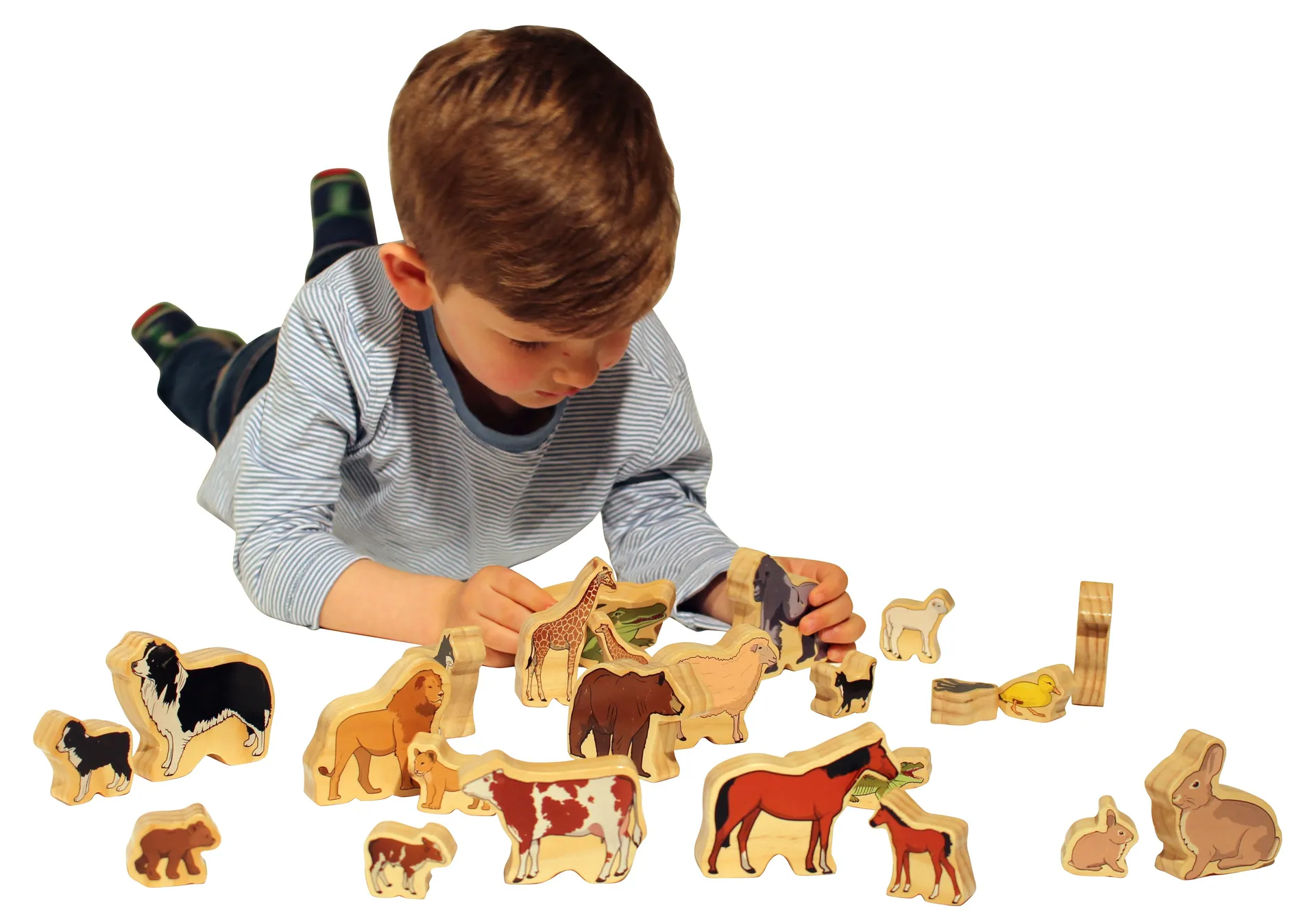 Hergestellt aus FSC-zertifizierter neuseeländischer Kiefer, steht "Meine Bauernhoftiere" für Nachhaltigkeit und Qualität. Die glatte Oberfläche jedes Holztieres ist ideal für kleine Hände, um sie leicht zu greifen und zu bewegen. Die lebendigen Bilder der Tiere sind durch ein ungiftiges Thermotransferverfahren aufgebracht und mit einem matten Klarlack versiegelt, was eine langanhaltende Haltbarkeit und Sicherheit beim Spielen gewährleistet. Mit Größen, die von 8 cm x 9 cm bis zu 3,5 cm x 3 cm reichen, und einer Dicke von 2 cm, sind diese Spielzeugtiere sowohl robust als auch handlich für Kinder ab 1 Jahr und älter.