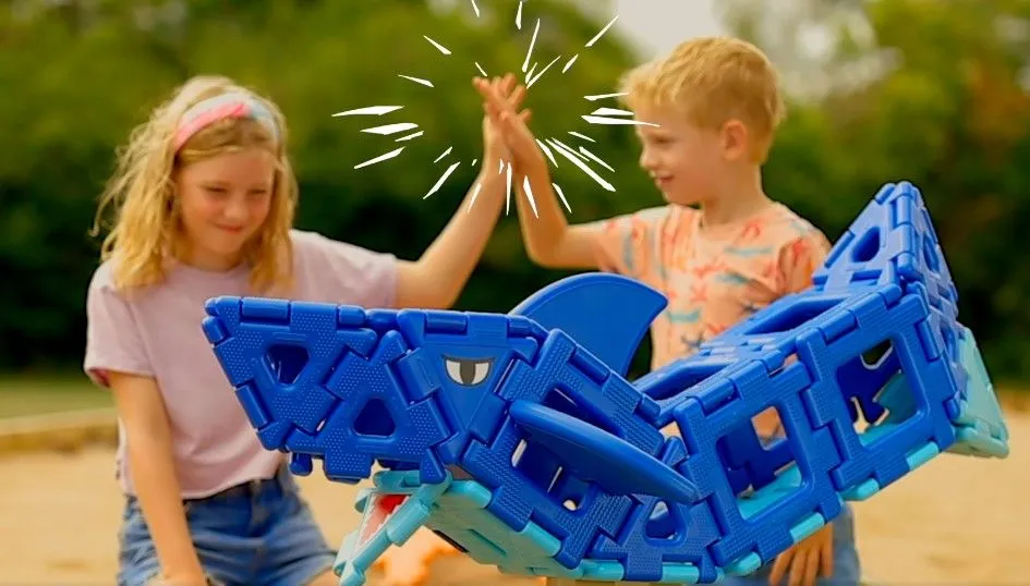 Die langlebigen Polydron-Teile sind perfekt für kleine Hände gemacht. Sie halten intensiver Nutzung stand und eignen sich sowohl für den Innen- als auch für den Außenbereich – bereit, jeder Welle standzuhalten!