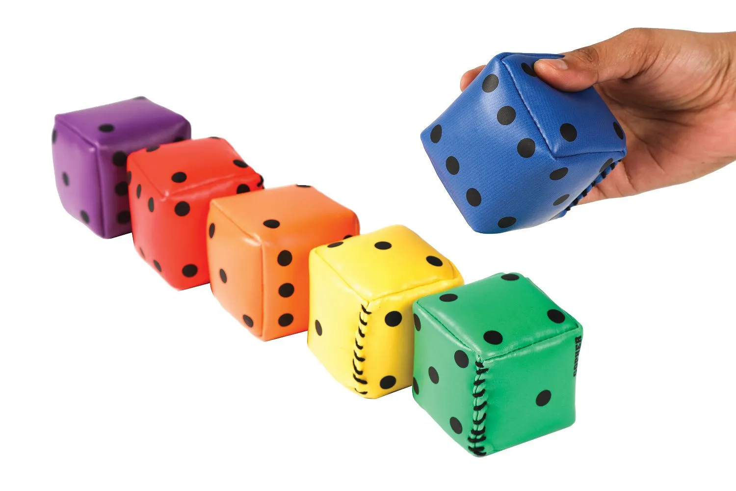 Die Würfel sind aus strapazierfähigem Vinyl gefertigt und dadurch besonders langlebig. Mit ihrer weichen Sitzsack-Füllung sind sie sicher für Kinder jeden Alters – perfekt zum Werfen, Fangen oder Würfeln. Die großen, gut sichtbaren Punkte (nummeriert von 1 bis 6) machen es einfach, Zahlen zu erkennen und erste Rechenübungen durchzuführen.
