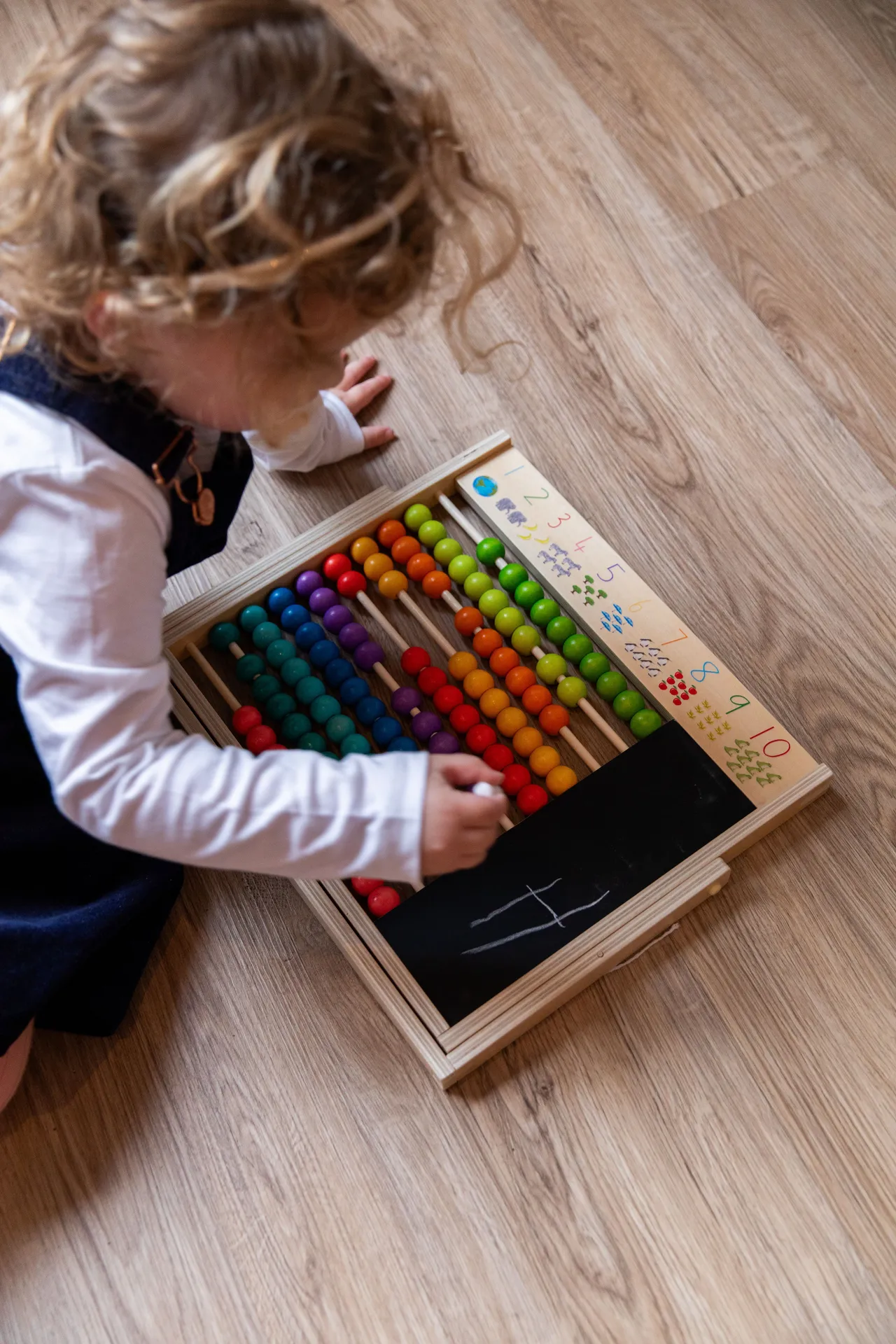 Die Tafel kann flach liegen oder aufrecht stehen, um alle mathematischen Gleichungen zu lösen. Mit visuellen Zähl- und Zahlenangaben auf der Oberseite des Abakus können Kinder, Eltern und Lehrer das Gelernte aufschreiben, aufzeichnen und nacherzählen.